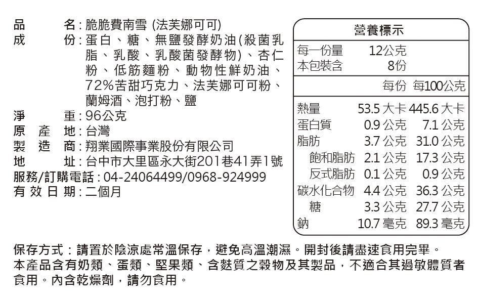 經典費南雪變身輕薄脆片,72%的苦甜巧克力與法芙娜可可多樣的風味,結合出令人陶醉的濃郁盛宴。