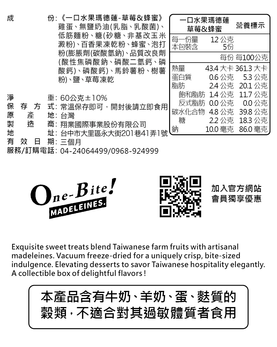 「草莓果乾x原味瑪德蓮」*10入